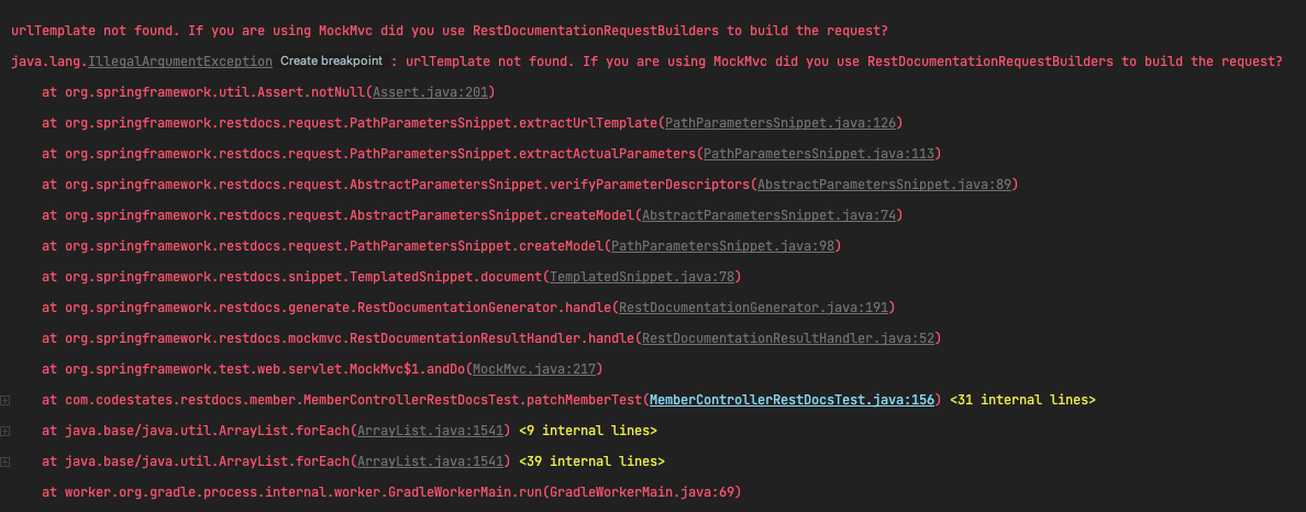 java.lang.IllegalArgumentException at MemberControllerRestDocsTest.java:156